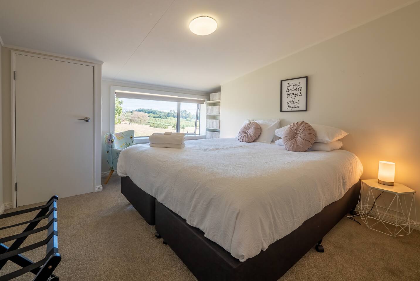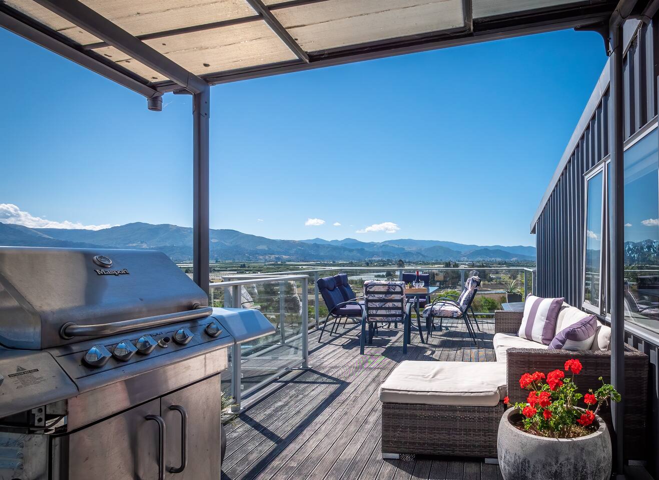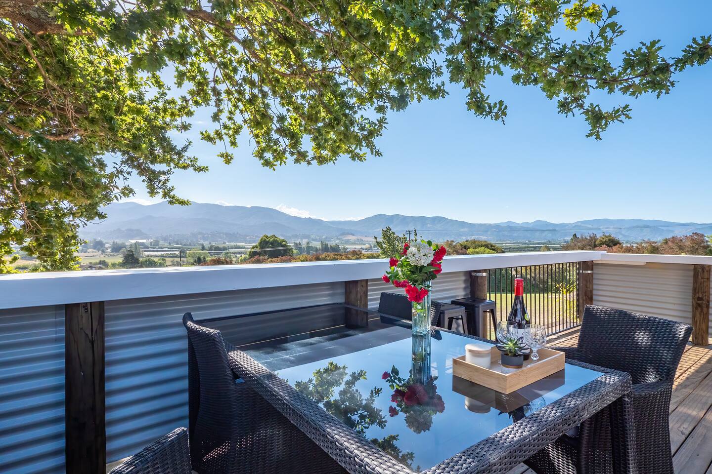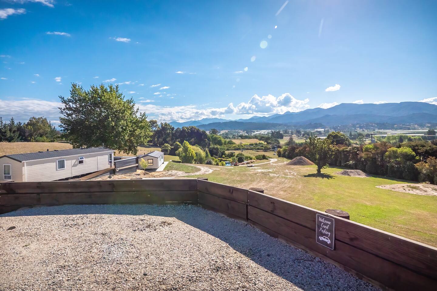 We neighbour a sheep farm with views to Mount Arthur and the Tasman Bay. We have intermittent noise from a nearby transfer station, but is quiet from 4pm onwards.