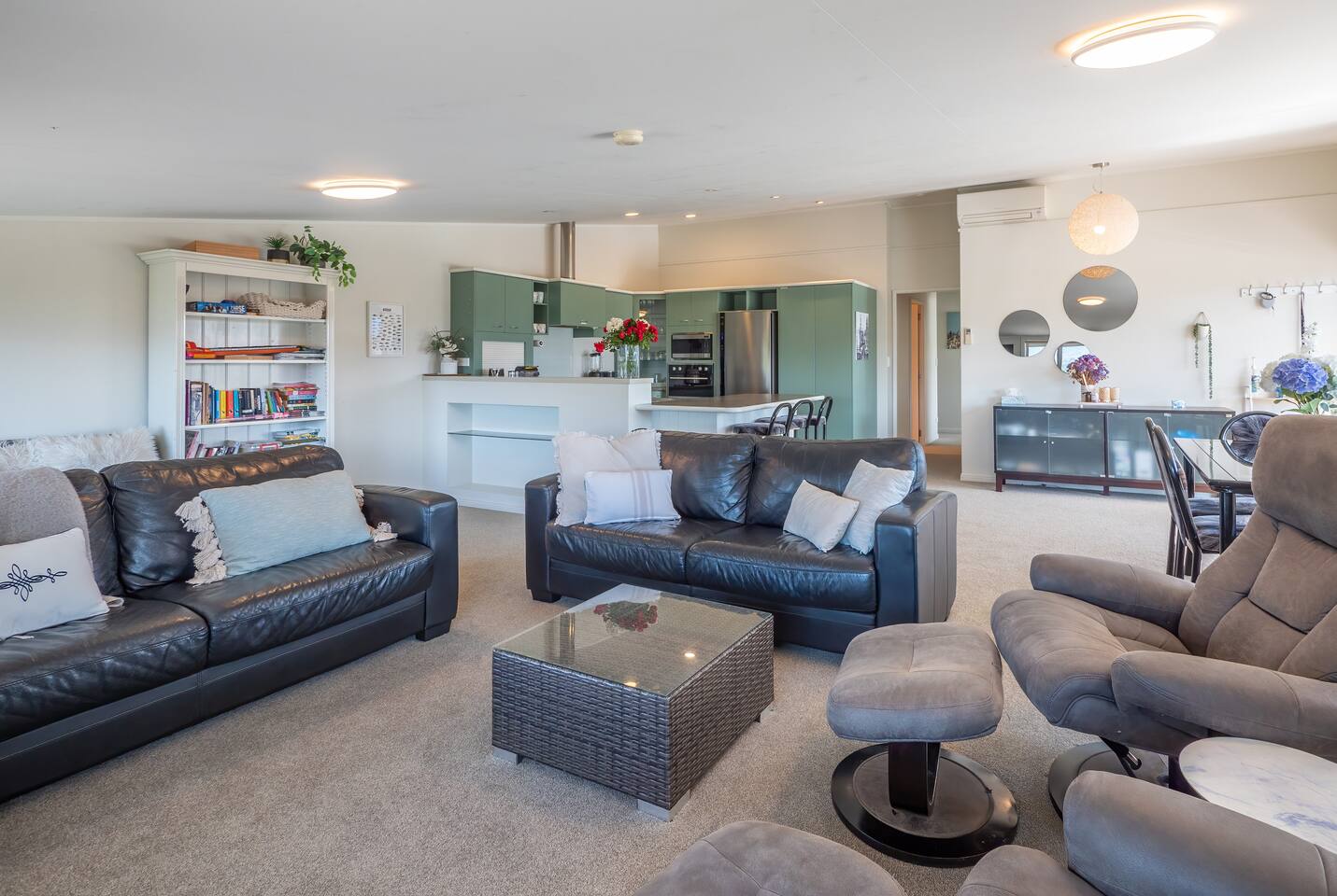 We have 3 different, private homes available on our property which we can offer for an event or family reunion. Each with its own full functioning kitchen, bathrooms, and laundry facilities. The property itself boasts a playground with treehouse and slide, trampoline and areas to ride bikes on with jumps. there is also a lake in which you can relax and swim with a rope swing, dive pontoon and bush bath. This is a shared space for all guests and the hosts family. This can be booked exclusively on request.